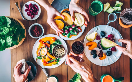 AI Generation. Close up of hands handling food