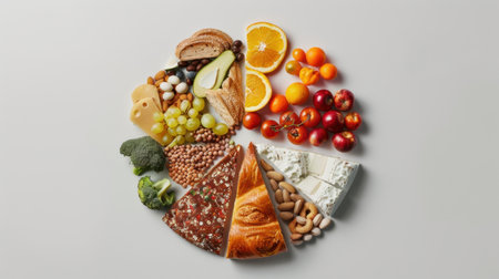 Food Pyramid Pie Chart Balanced Nutrition Food Groups Conceptual Infographic White Background