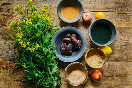 Healthy vegan food nutrition high in flavonoids, antioxidants, lycopene, anthocyanins, vitamins, proteins, bio flavonoids minerals, fibre. Vegetables, nuts, fruit, herbs, seeds, w