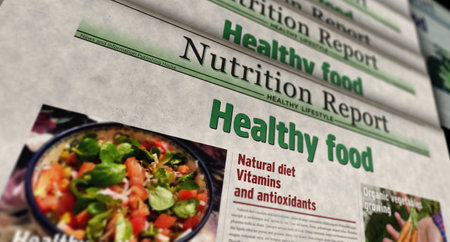 Healthy food and natural diet vintage news and newspaper printing. Abstract concept retro headlines 3d illustration.