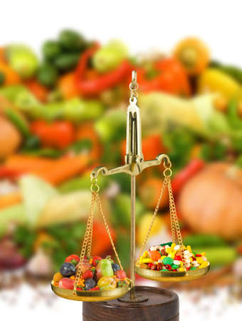 the balance between unhealthy foods and vegetables. the concept of health