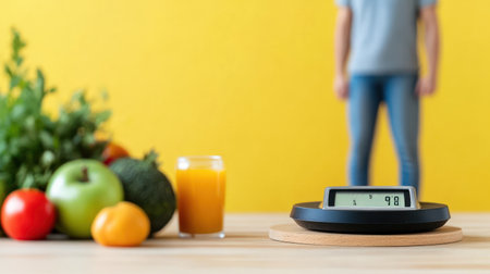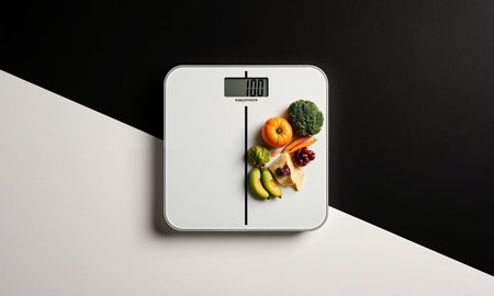 Food bathroom weighing scales design made from fruits and vegetables