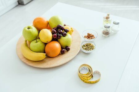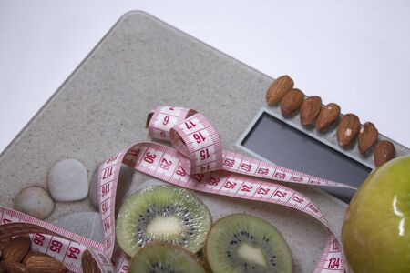 natural fruits with tape measure, diet concept