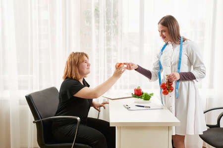 Young girl visiting nutritionist to lose weight with the help of diet program