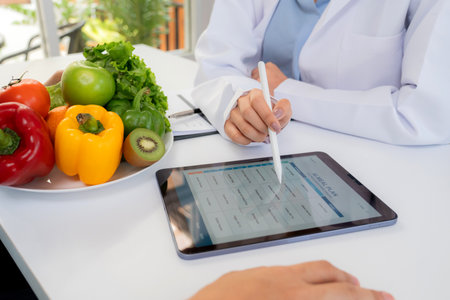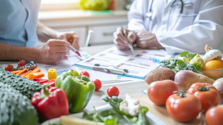 Experience the collaboration between a dedicated nutritionist and their patient in devising a specialized dietary strategy. This picture embodies the journey towards better health through informed food choices. illustration created by Generative AI