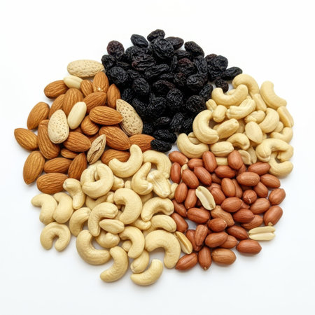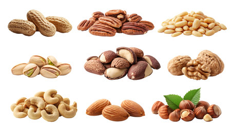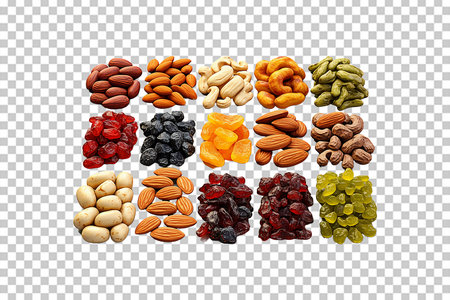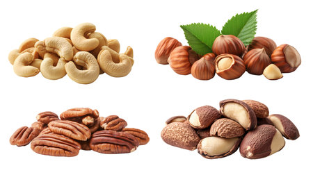 Neatly displayed nutritious nuts, PNG, created with Generative AI