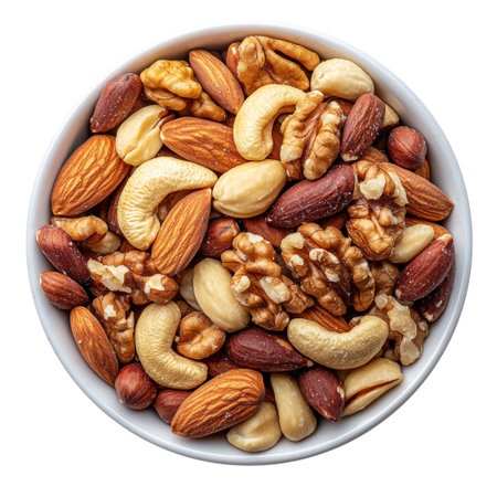 This image showcases a vibrant collection of assorted nuts in a bowl, perfect for healthy snack ideas, nutrition discussions, or culinary presentations.