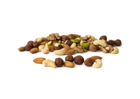 Mixed of nuts isolated on white background. Cashews, hazelnuts and brazil nut
