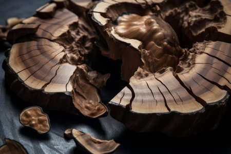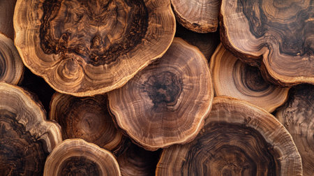 The natural texture of a wood cross slice, displaying rich patterns and smooth surfaces in soft lighting.