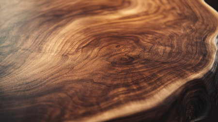 This image showcases a beautifully polished wooden surface featuring intricate grain patterns. Ideal for design projects, it highlights natural textures and warm tones.