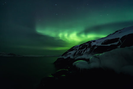 Aurora borealis in the night sky over the fjord