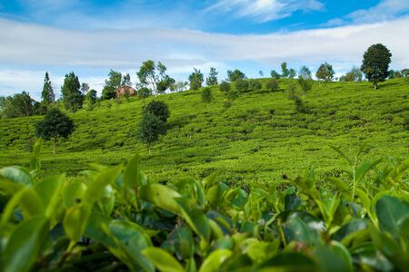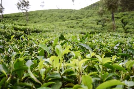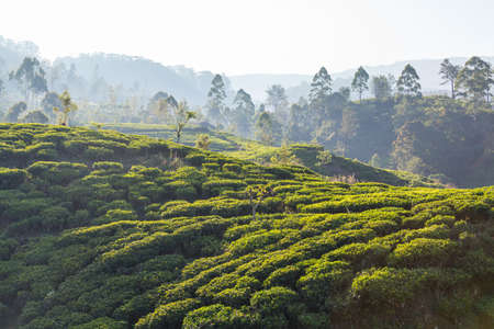 Picturesque natural landscape. Green tea plantations in the highlands. Growing tea.