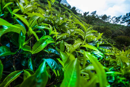 Green tea bud and fresh leaves at the tea plantations in Nuwara Eliya, Sri Lanka