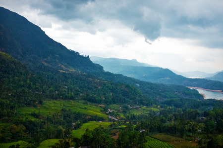 Valley with tea plantations in the highland area. The town of Haputale, Sri Lanka