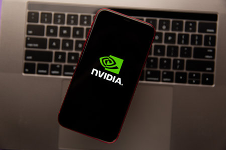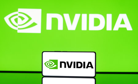 Tula, Russia - November 11, 2020: Nvidia logo on iPhone display