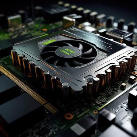 A close-up of a GPU processing unit, highlighting hardware essential for machine learning computations.