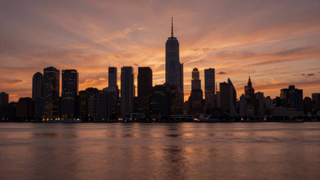New York, US - May 12, 2023 - Panoramic view of a sunset in New York