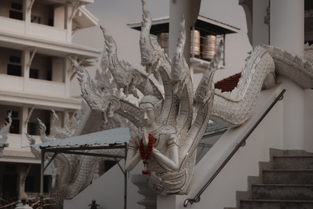 An Exquisite and Elegant White Serpent Sculpture Gracefully Positioned at the Temple Entrance