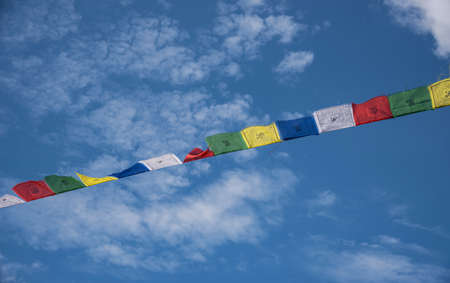 Tibetan prayer flags background blue sky