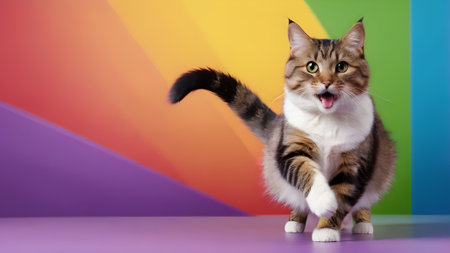cute tabby maine coon cat standing on colorful background. generated by AI.