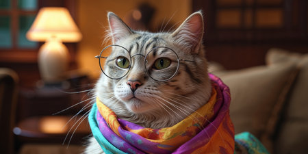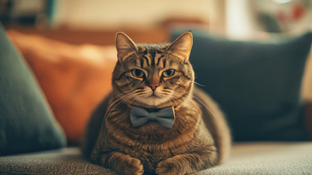 Cat funny animal or pet inside house or home. best human friend. Closeup Portrait.