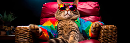 Cute cat wearing sunglasses. animal on summer vacation, animal illustration. AI generative.
