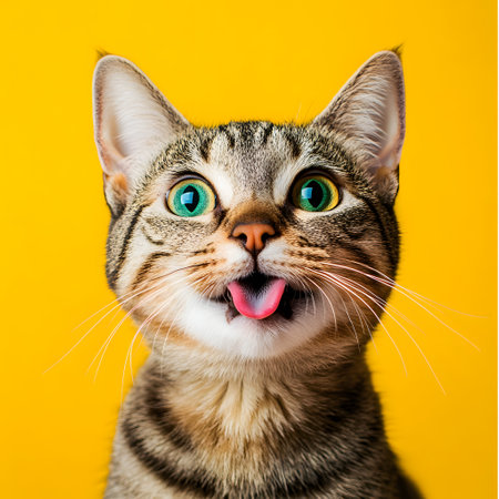 Wide-eyed Feline Shows Astonishment Against Vibrant Background in Close-up Shot. Concept Close-up Shot, Vibrant Background, Wide-eyed Feline, Astonishment Expression