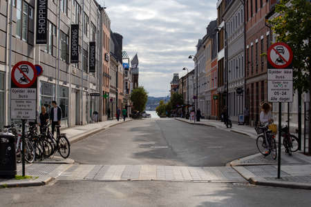 Oslo, Norway - June 23, 2019: Houses On Cort Adelers gate street In Summer evening.