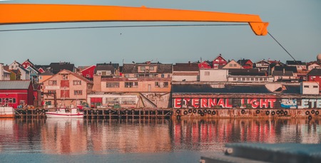 A wonderful Night shot of a city and harbor in Norway. beautiful landscape and light with sunset