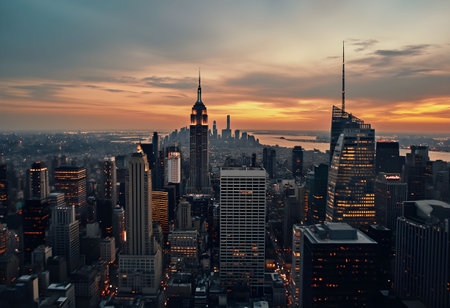 View from the Rockefeller Center on New York City Skyline on an evening.