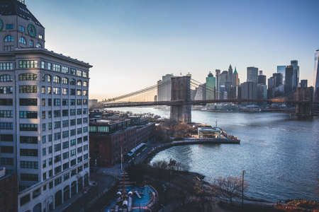 Brooklyn bridge and Manhattan cityscape, view on New York downtown from Dumbo, Brooklyn, USA