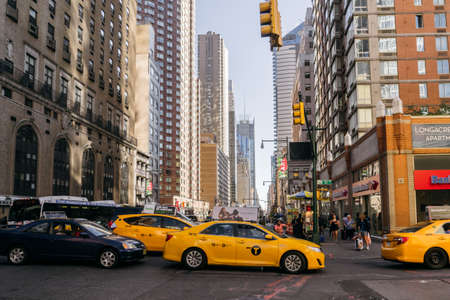 New York, USA - September 20, 2015: Yellow taxi on the street in New York.