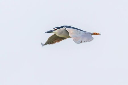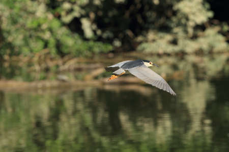 Adult Black-crowned Night-Heron(Nycticorax nycticorax hoactli) flying over wetlands