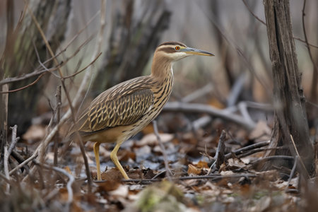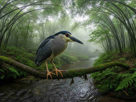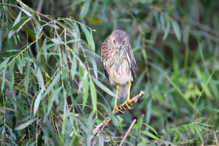 Black-crowned night heron (Nycticorax nycticorax) in the bamboo forest