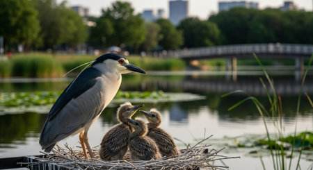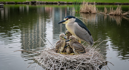 Black crowned Night Heron, wild bird at nature