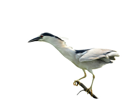Black-crowned Night Heron stretches his neck on isolated white background, nycticorax, bird