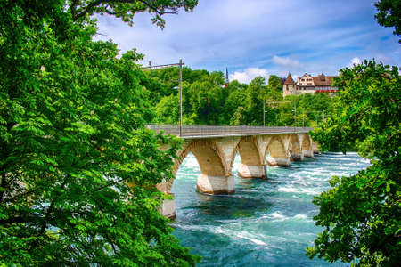 Bremgarten, Switzerland - June 16, 2018: bridge over the Reuss river in the town of Bremgarten. Bremgarten is a municipality in the Swiss canton of Aargau, its medieval old town is listed as a heritage site of national significance.