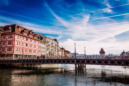 Lucerne, Switzerland - January 15, 2013: Historic city center of Lucerne with Famous Chapel bridge and Lake Lucerne