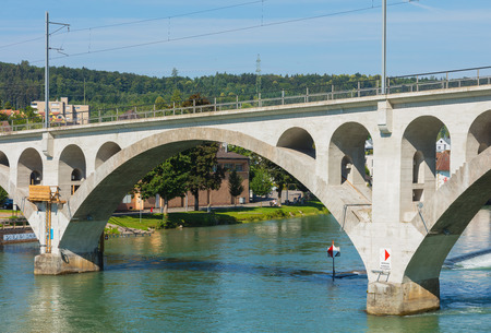 BERN, SWITZERLAND - CIRCA AUGUST 2015 Bridge and Aare river