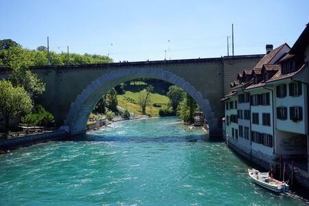 Ancient semi-circular bridge over the Aare river in the old town of Bern, Switzerland,