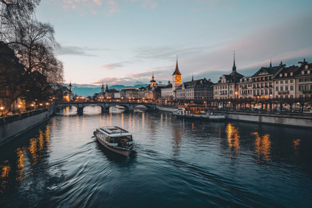 Beautiful view of Lucerne featuring a historic bridge, charming architecture, and serene reflections in the river, perfect for showcasing Swiss culture.