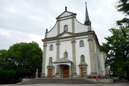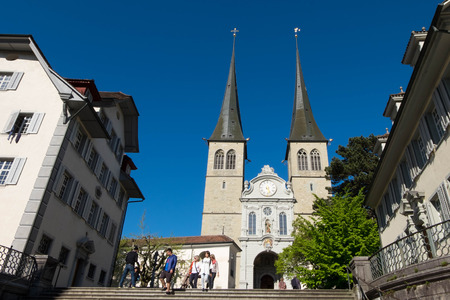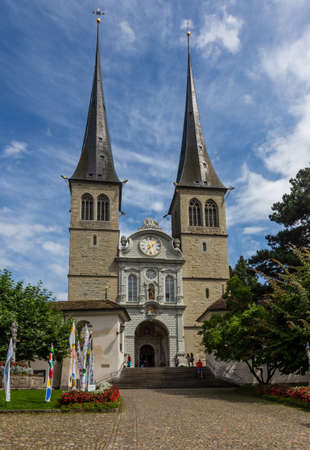 View of the facade of the Church of St. Leodegar in Lucerne, Switzerland