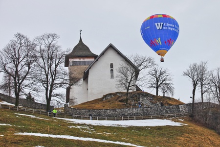 January 23rd, 2012 Chateau de Oex, Switzerland. The 34th International Hot Air Balloon Festival in Chateau de Oex Switzerland. The festival is being held from 21- 29 January 2012.