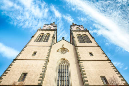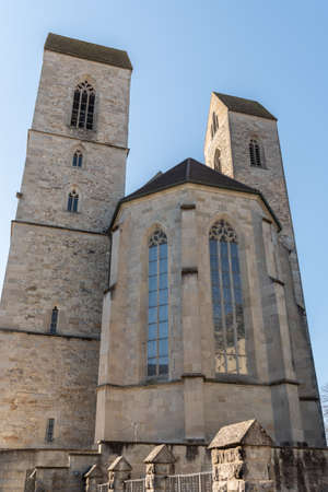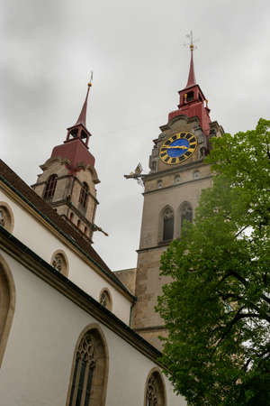 Towers of the holy church on a rainy day in the city of Winterthur in Switzerland 11.5.2021