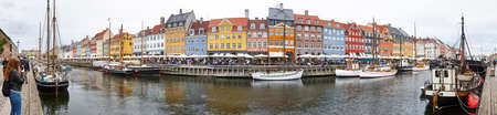 Panoramic view of Nyhavn in Copenhagen, Denmark