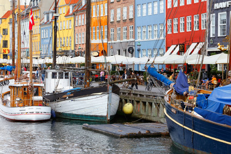 Copenhagen, Denmark - August 24, 2017: View of the Copenhagen district of Nyhavn.