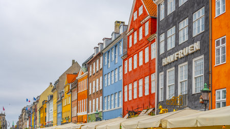 Copenhagen, Denmark on August 21, 2022: Nyhavn district is one of the most famous landmark in Copenhagen