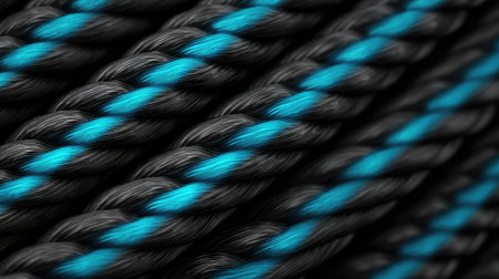 This image showcases a detailed close-up of twisted black and blue rope, emphasizing unique textures and intricate patterns, perfect for creative projects.