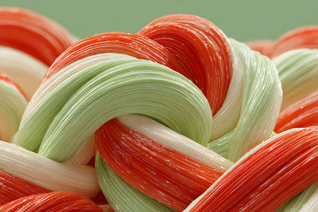 Intertwined Colorful Ropes Creating Abstract Visual Texture
