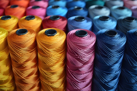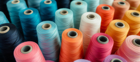 Colorful cotton threads on spools for sewing and embroidery, ideal for creative crafts and projects